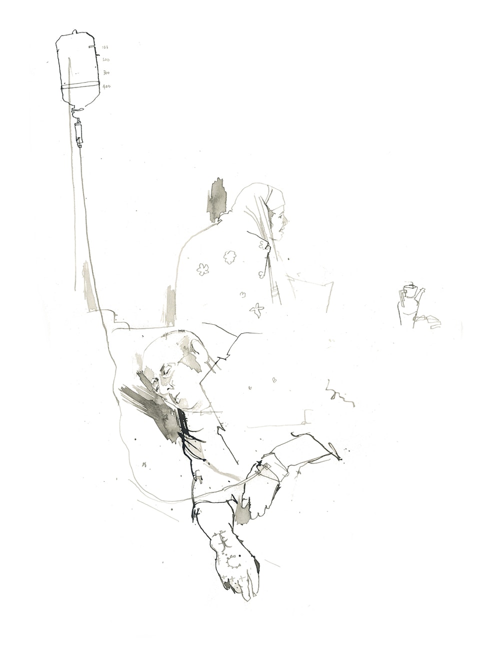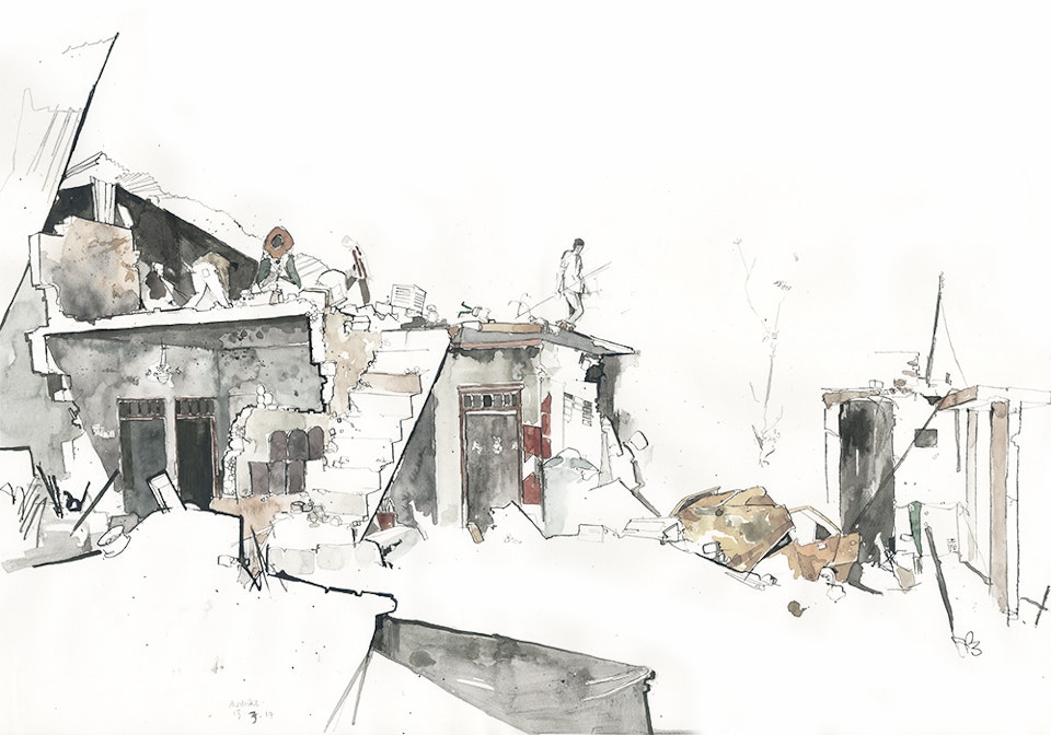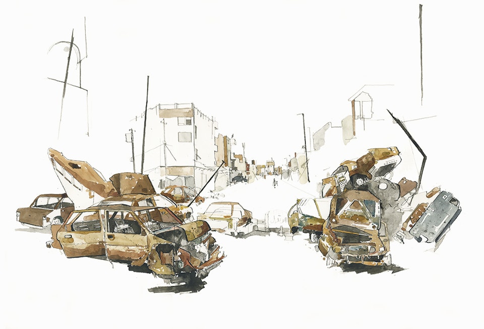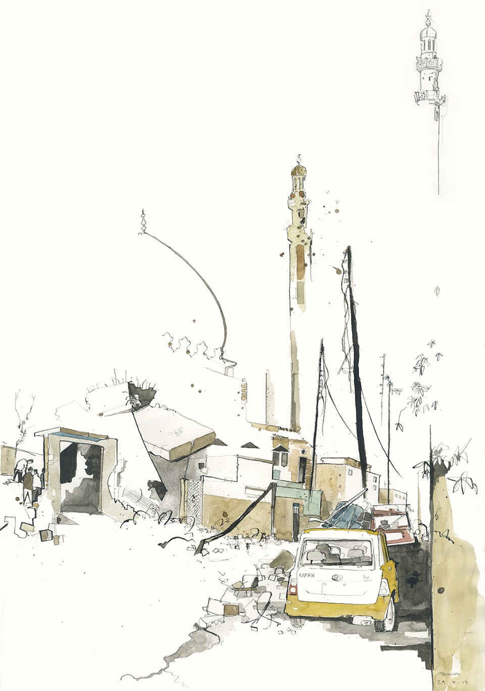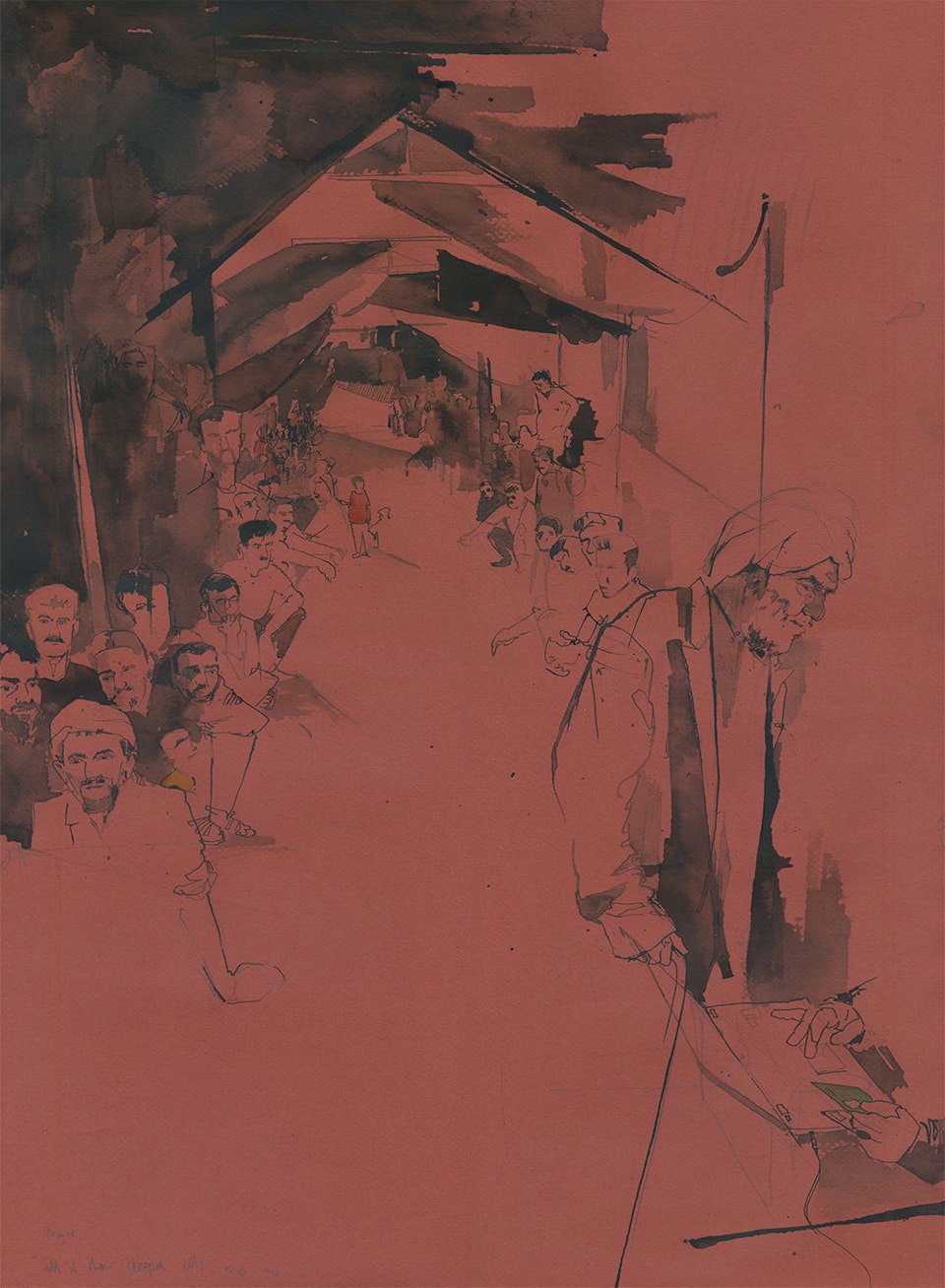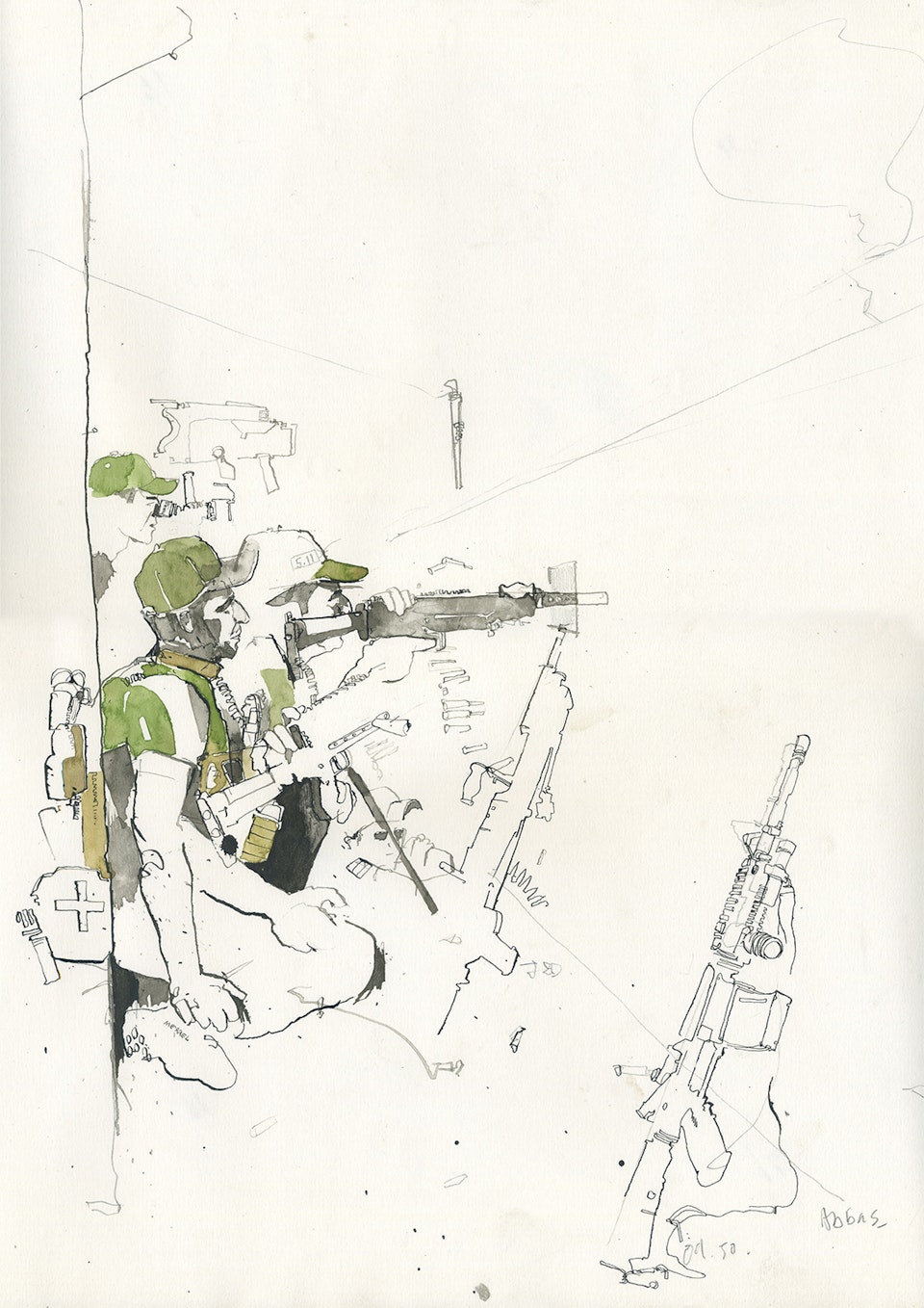 Last April, I joined the Iraqi special forces’ “golden division” as they fought Islamic State in west Mosul. The old city is home to deeply embedded Isis fighters who hold an estimated 200,000 civilians hostage with car bombs and gunfights. It is an impossible situation for the Iraqi secutiry services, one that offers little hope for the people of Mosul. These drawings, I believe, are the first of this conflict and address some of the more common scenes while the war continues: from the liberated areas to the frontline, the destroyed streets, the camps for internally displaced people and the Isis screening centres.