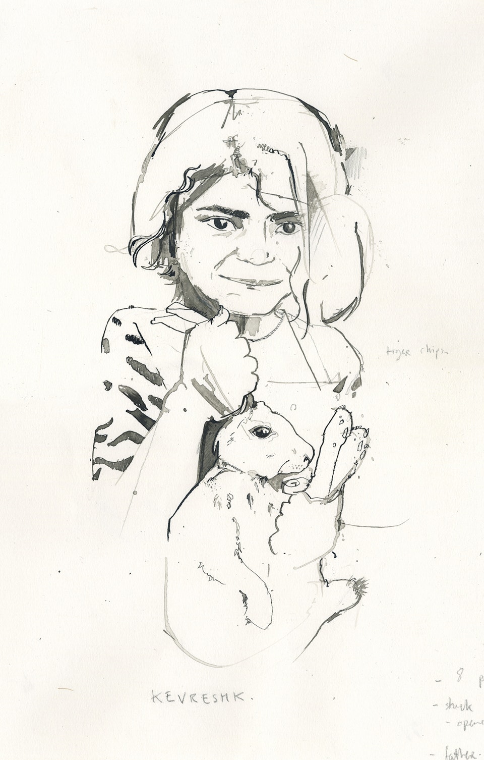 In 2014 thousands of Yazidis were caught on the Sinjar Mountains, surrounded by ISIS whilst the world watched on. Nourhan Jindy was one of them. Now posing here with a rabbit. Holding it by the ears in a way it seems she has watched someone else do. It is a relationship with a meal not a pet.