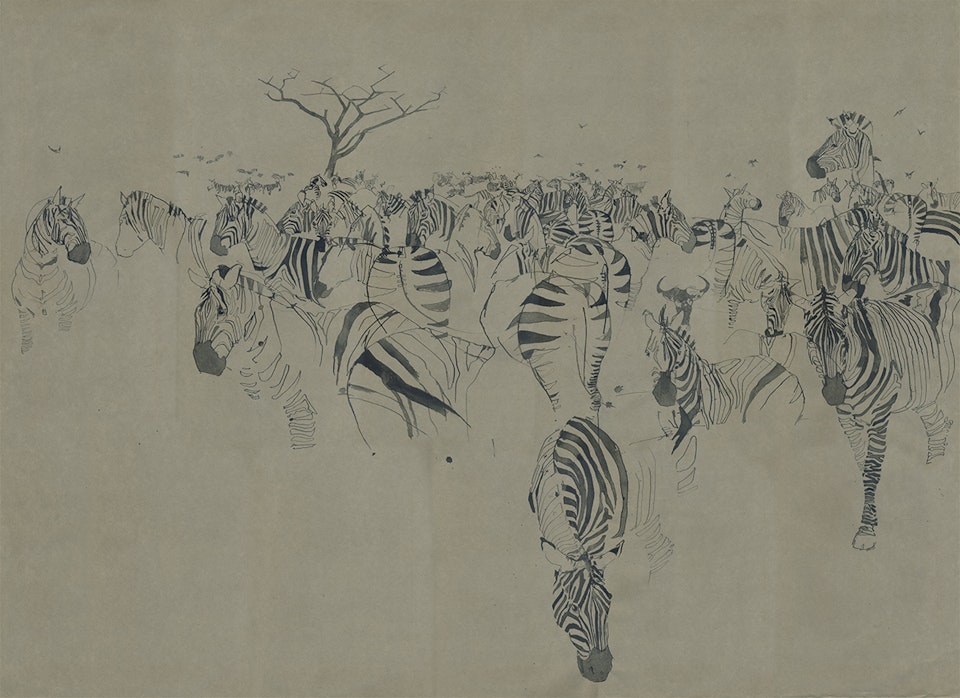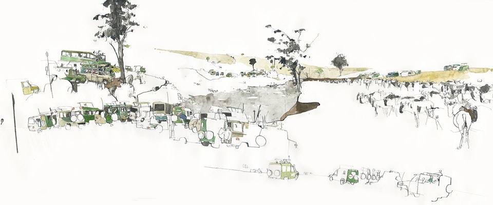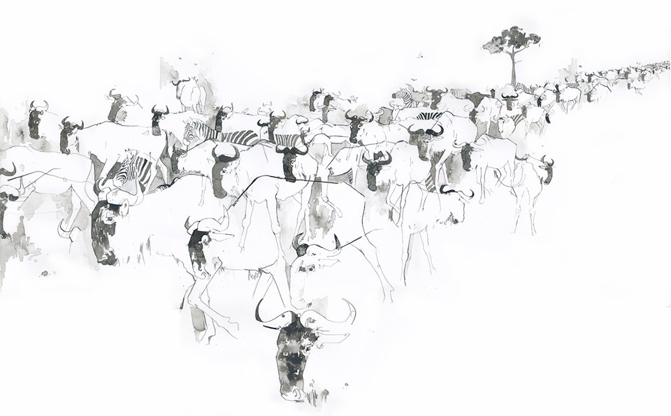 Every year a billion wildebeest walk in a circle out of Tanzania across Kenya and back. They are part of the global clockwork that is so apparent in the natural world and it's a movement that has existed on this earth for longer than human beings have. The difficulty about drawing animals is that you can never get close enough and they are never still.