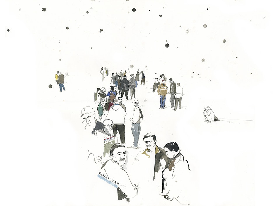 Each day on this street in Dushanbe men wait around for people to offer them construction work. Many of them have bought their own power tools. And leave them on the pavement with a telephone number and a hopeful note. This queue is a litmus test for the Tajik economy. The alternative is board the four day train to Moscow.