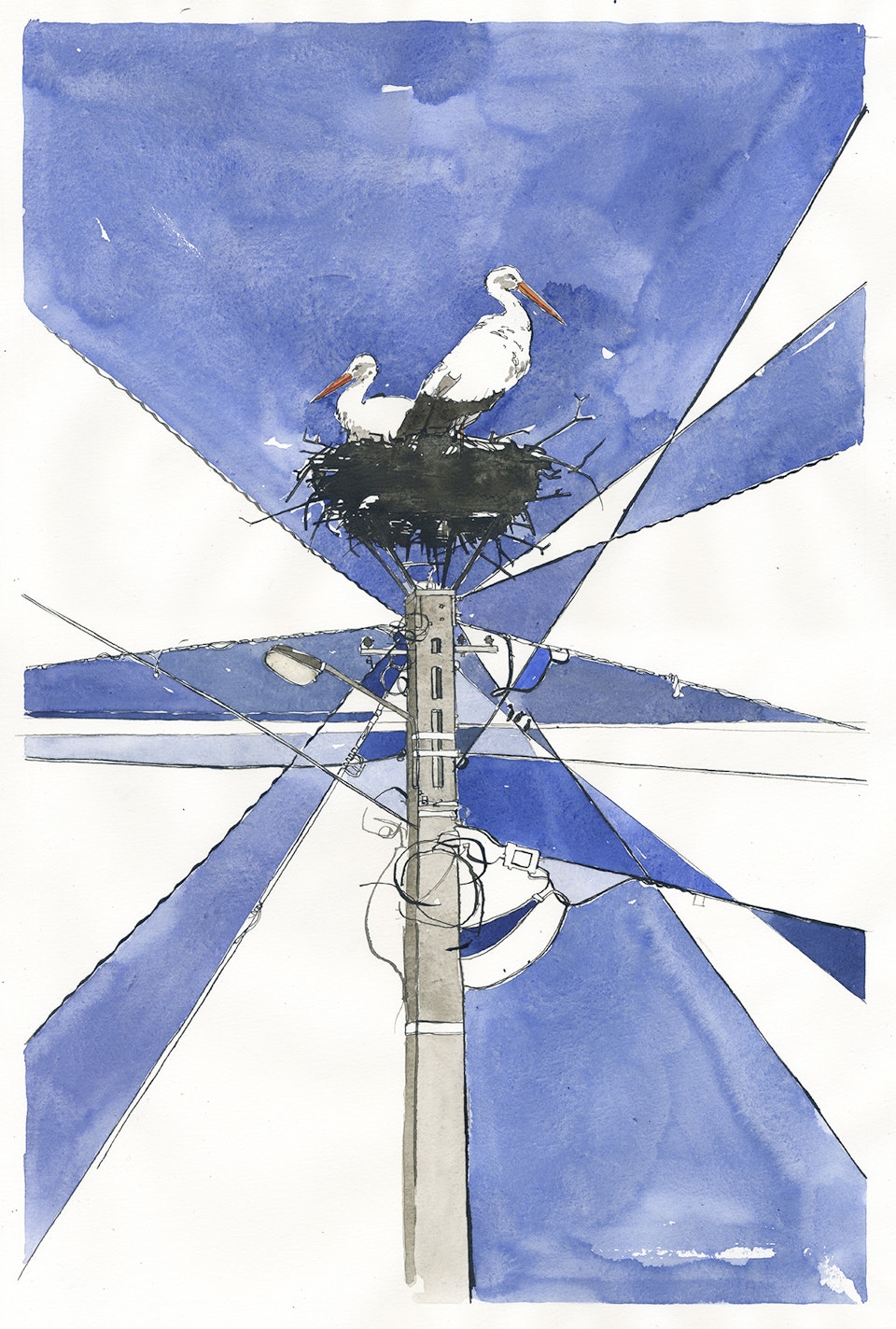 In Romania this year the storks arrived three weeks early, only to be faced with freezing cold weather. The public were asked on the news to rescue the storks by putting them in their garages or cars to keep warm. Not often the same reception is given to the other migrants in this world. Here they nest on the top of a telegraph pole in Miclosoara, Transylvania.