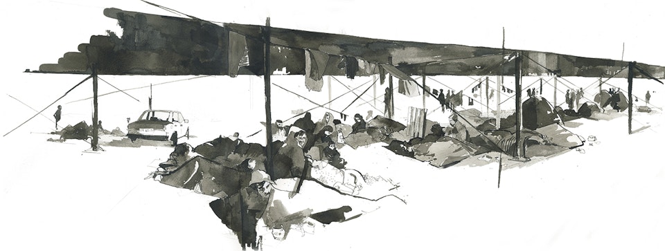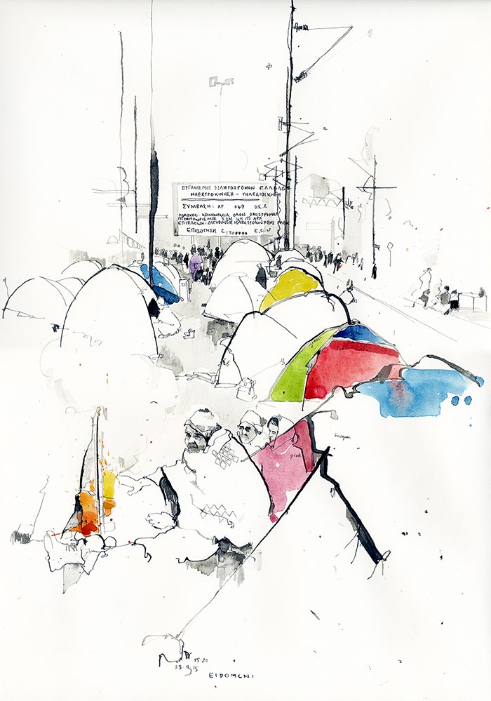 Refugees waiting indefinitely in a transit camp in Idomeni Greece.