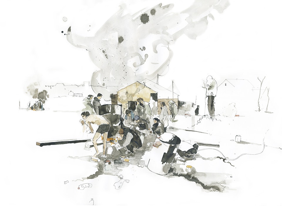 In a warehouse in Belgrade hundreds of young, male migrants burn plastic, railways sleepers and clothes that have been donated trying to stay warm. Most are waiting to be smuggled across the border and on up into Europe.