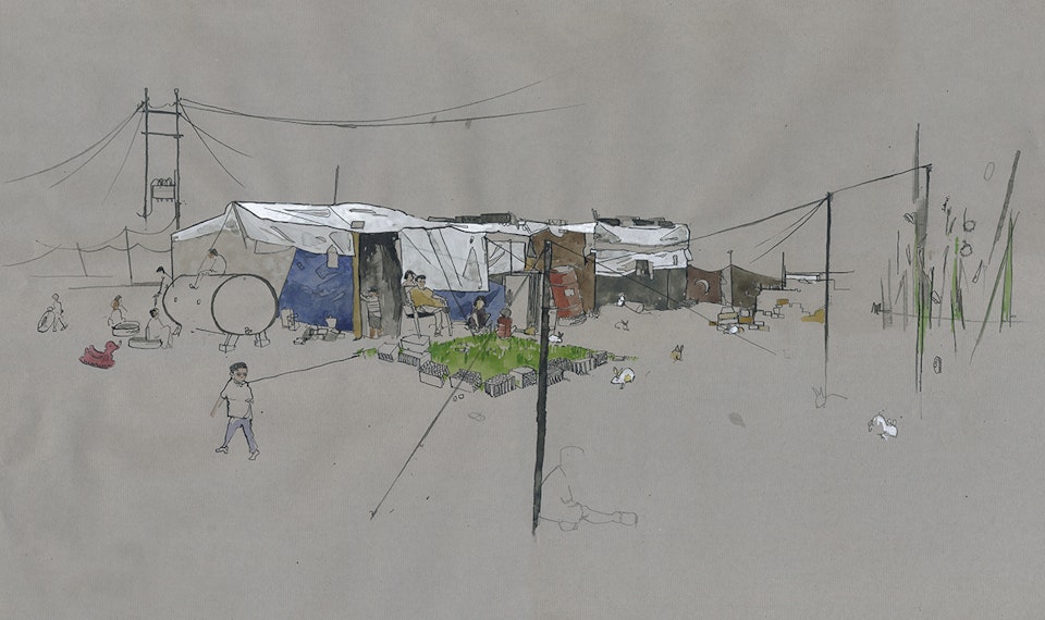 Lebanon is home to over 1 million Syrian refugees. More than 20% of their population. By comparison Europe has seen an increase of less than 2% in population from migrants. Many of the temporary settlements in Lebanon are built with salvaged waterproof advertising posters . Which means you see apartment blocks, Spanish footballers and beautiful women wrapped around these makeshift homes.