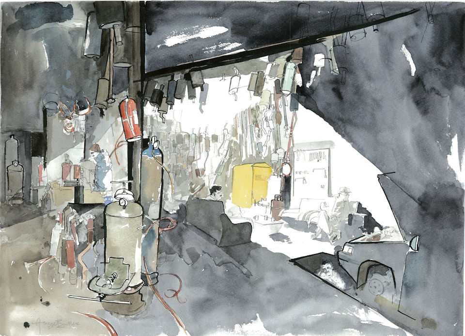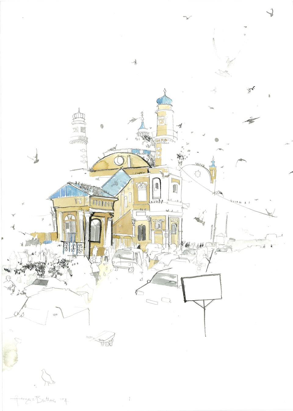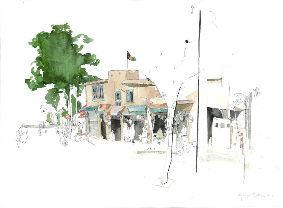 Over the next few weeks, I drew Faizabad market, the police station in Kabul’s District 10, a Red Cross (ICRC) prosthetic limb clinic and the scenes outside Herat’s blue mosque. I drew exhaust-pipe fitters and stovemakers, pigeon sellers and Hajji Mirwais, a sewing-machine vendor. Of course, this is a country where the British have had a mixed reception over the past 13 years, but not once was an unfriendly word directed my way.