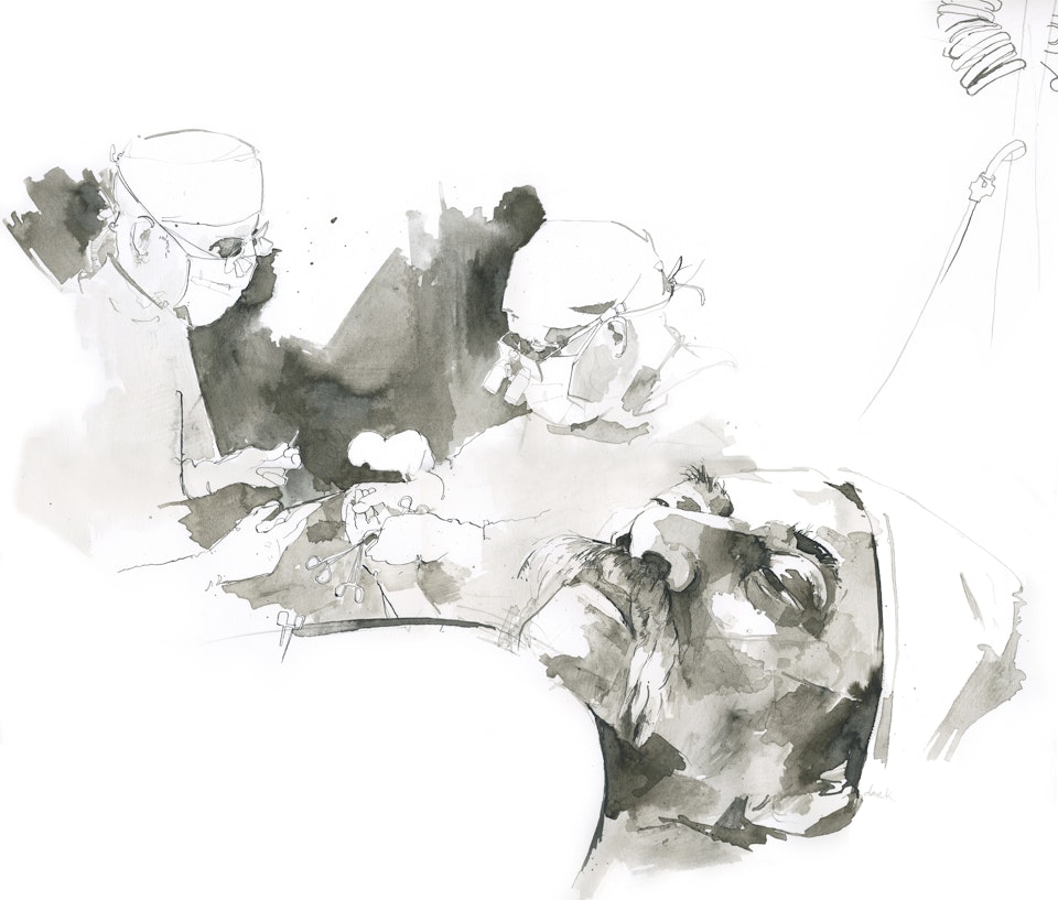 It is extraordinary to observe two pairs of hands try and repair the ability of one. Watching Donald Sammut I could see why often surgeons make great artists. The value of being bold, with highly tuned hand eye coordination; an obsessive understanding of what looks beautiful and a consideration for symmetry were all tips from the drawing books. But it doesn’t end there. It turns out surgery is also under great time constraint, these procedures are all done under local anesthetic, including the amputations, with a tourniquet to stem blood flow. The shorter the tourniquet time the less damage to the tissue.