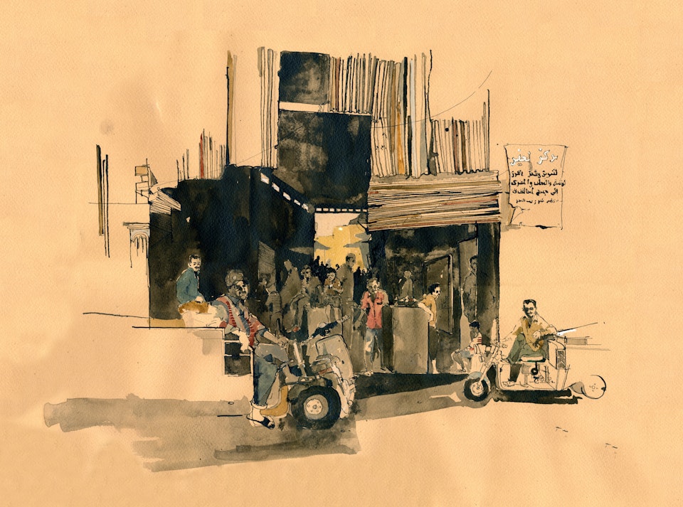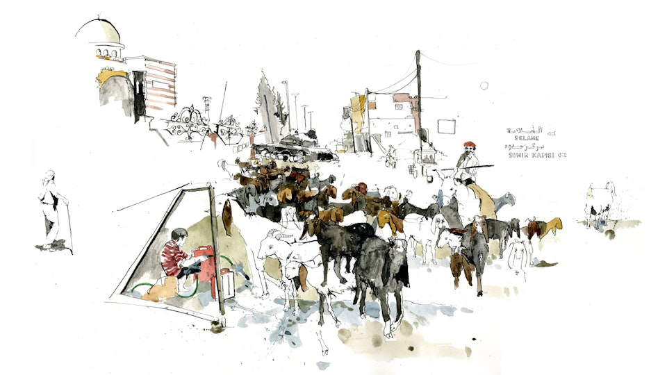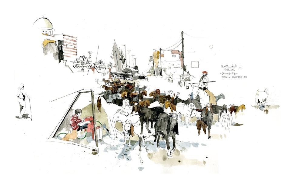 What you can't see from this drawing is Ismail, a goat herder, wandering along behind and watering his goats at a nearby tap.
