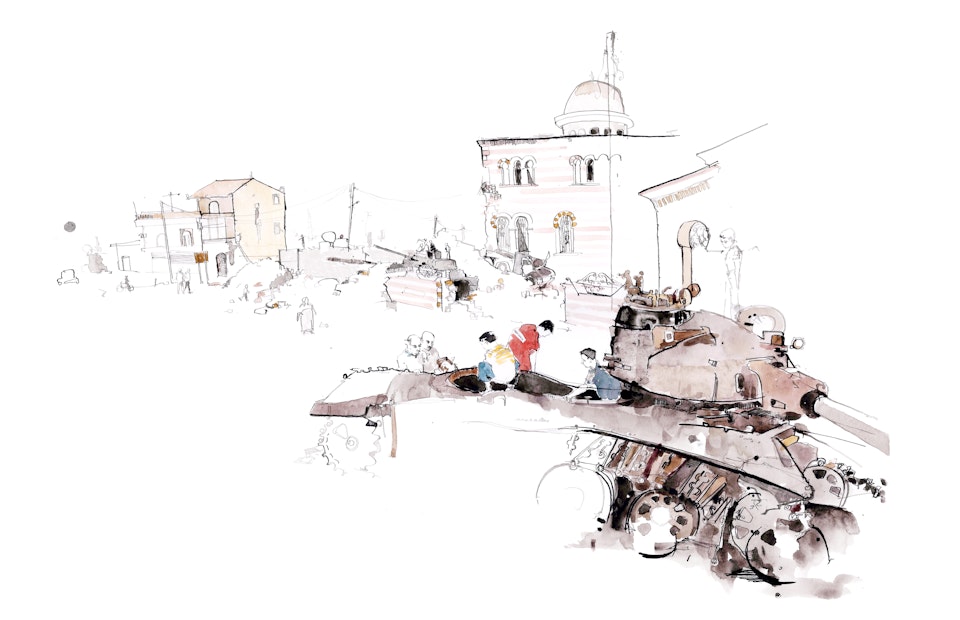 Syria: a bakery and a climbing frame tank
