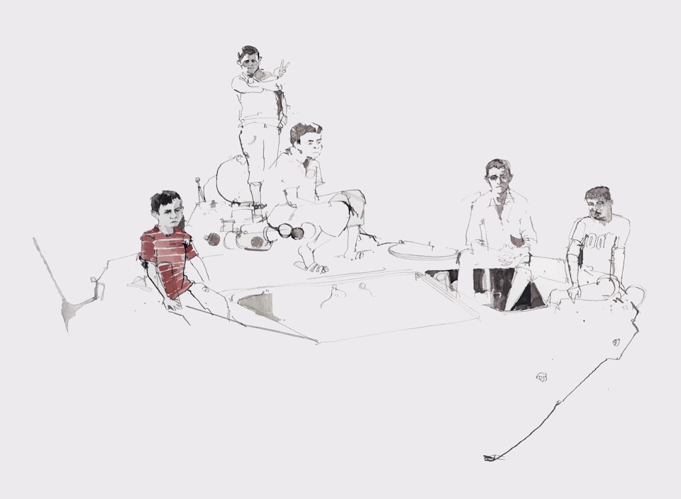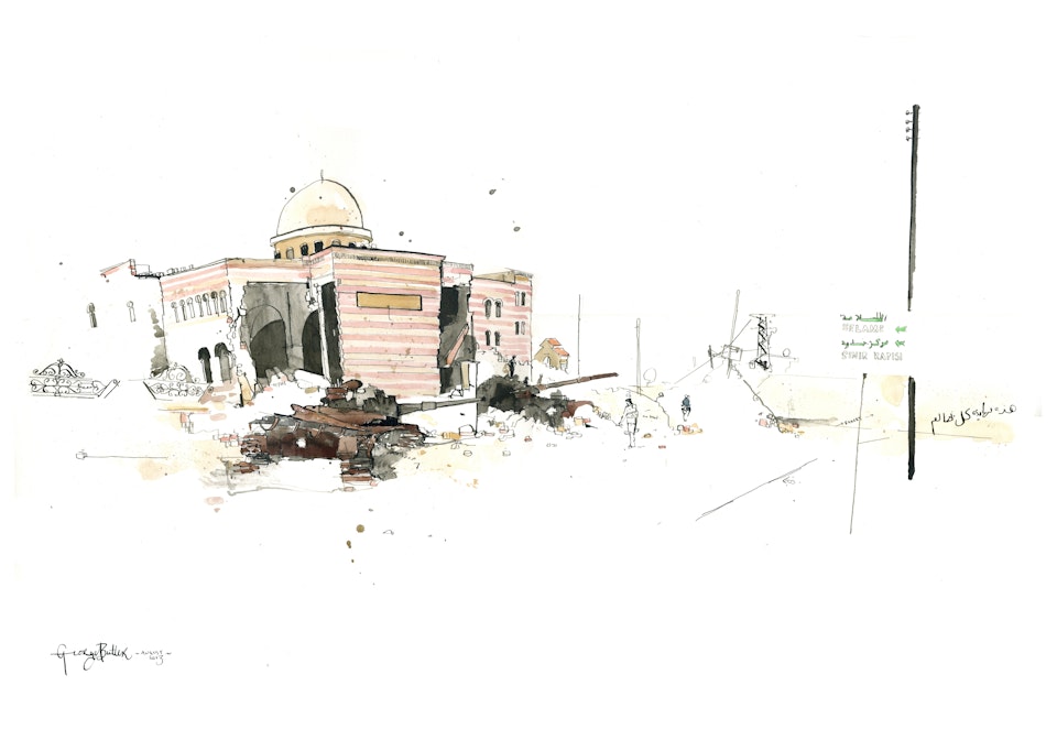 Whilst I sat and drew it occurred to me that the most shocking thing, perhaps, was the children playing as they do, in amongst the tanks and the rubble - this has obviously become normal for them and with the schools now shut in Azaz this is unlikely to change.